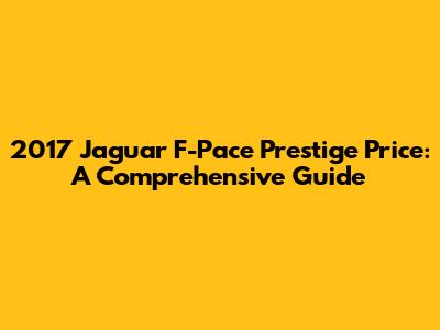 Hey guys! Are you curious about the 2017 Jaguar F-Pace Prestige and, more specifically, what it's going to cost you? You've come to the right place! In this comprehensive guide, we'll dive deep into the pricing details of this luxury SUV, exploring various factors that influence its value. Whether you're considering buying one, selling one, or just satisfying your curiosity, we've got you covered. We'll break down the original MSRP, what you can expect to pay on the used market today, and other essential cost considerations. So, buckle up and let's get started!