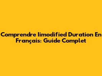Comprendre Iimodified Duration En Français: Guide Complet