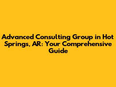 Hey there, folks! Ever found yourself scratching your head, wondering how to make your business in Hot Springs, AR, reach its full potential? Well, you're in the right place! We're diving deep into the world of Advanced Consulting Group – a name you might have heard buzzing around if you're looking to level up your game. This article is your ultimate guide, covering everything from what they do to why they might be the perfect fit for your needs. We'll explore their services, their approach, and how they can help you navigate the often-tricky waters of business growth. So, grab a coffee (or your favorite beverage), sit back, and let's get started.