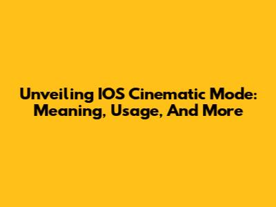 Unveiling IOS Cinematic Mode: Meaning, Usage, And More