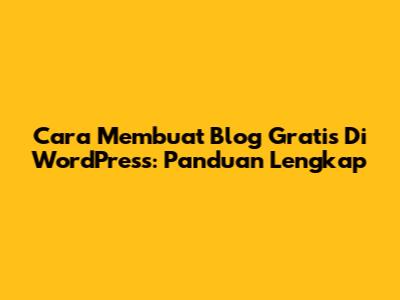 Cara Membuat Blog Gratis Di WordPress: Panduan Lengkap
