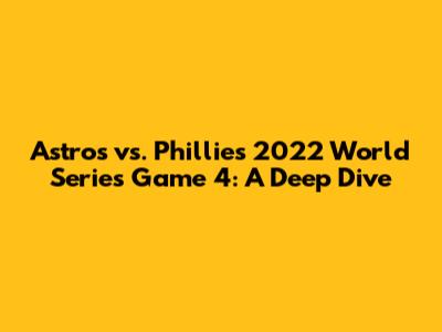 Hey everyone! Let's dive deep into Game 4 of the 2022 World Series, where the Houston Astros clashed with the Philadelphia Phillies. It was a pivotal moment in the series, with both teams hungry for a win. This article will break down the game, looking at key moments, standout performances, and the overall impact on the series. We'll recap what happened, analyze the strategies, and provide insights that go beyond the box score. So, grab your snacks, get comfortable, and let's relive the excitement of Astros vs. Phillies, Game 4! This game was a rollercoaster of emotions, and we're going to unpack every thrilling detail. From clutch hits to dazzling defensive plays, this game had it all. Let's see how both teams prepared and what the outcome was.