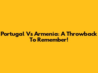 Portugal Vs Armenia: A Throwback To Remember!