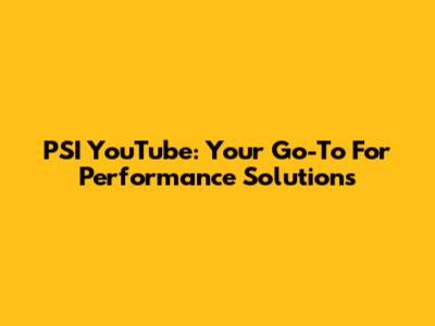 PSI YouTube: Your Go-To For Performance Solutions