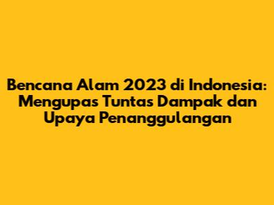 Hai guys! Mari kita bedah bersama-sama tentang bencana alam yang terjadi di Indonesia sepanjang tahun 2023. Tahun lalu, negara kita tercinta ini memang menghadapi serangkaian tantangan alam yang cukup berat, mulai dari gempa bumi yang mengguncang, banjir yang melanda berbagai daerah, hingga cuaca ekstrem yang bikin was-was. Kita akan coba kupas tuntas, mulai dari jenis-jenis bencana yang terjadi, dampaknya bagi masyarakat dan lingkungan, serta upaya-upaya penanggulangan yang telah dilakukan. Siap-siap, ya, karena kita akan menyelami informasi penting yang perlu kita ketahui bersama!