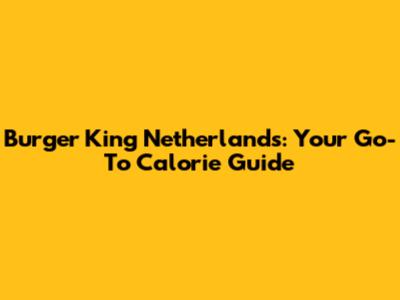 Understanding Burger King Calories in the Netherlands: What You Need to Know