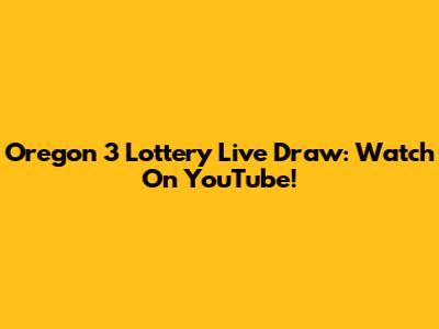 Oregon 3 Lottery Live Draw: Watch On YouTube!