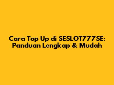 Cara Top Up Di SESLOT777SE: Panduan Lengkap & Mudah
