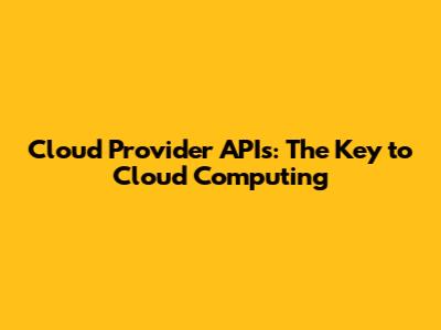 What Exactly is a Cloud Provider API?