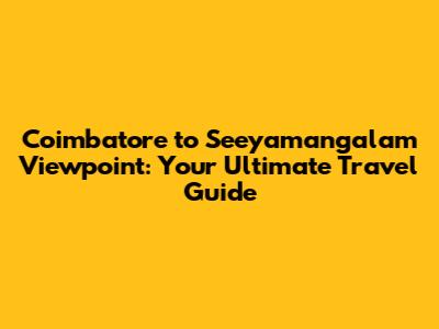 Hey there, travel enthusiasts! Ever dreamt of escaping the hustle and bustle of city life and finding a serene spot to soak in some breathtaking views? Well, if you're anywhere near Coimbatore, you're in luck! Today, we're diving deep into the journey from Coimbatore to Seeyamangalam viewpoint, a gem that offers some seriously stunning panoramas. We'll cover the distance, how to get there, what to expect, and why this spot is totally worth your time. So, grab a cuppa, and let's get planning your next adventure!