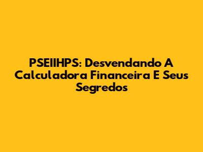 PSEIIHPS: Desvendando A Calculadora Financeira E Seus Segredos