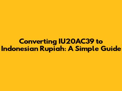 Hey guys, let's dive into something that might seem a bit tricky at first: figuring out how much IU20AC39 is worth in Indonesian Rupiah (IDR). Don't worry, it's not as complicated as it sounds! This guide is here to break it down in a way that's easy to understand. We'll explore what IU20AC39 could represent and how to approach converting it to IDR. Remember, understanding the value of different currencies is super important whether you're traveling, managing finances, or just curious about international exchange rates. Let’s get started and make this process clear and simple for everyone, alright?