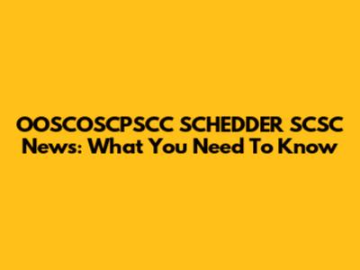 OOSCOSCPSCC SCHEDDER SCSC News: What You Need To Know