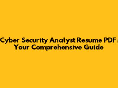 Cyber Security Analyst Resume PDF: Examples and Templates