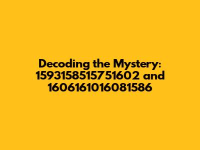 Have you ever stumbled upon a seemingly random string of numbers and wondered what secrets it held? Today, we're diving deep into the numerical abyss to decode the enigmatic sequences 1593158515751602 and 1606161016081586. These aren't your everyday digits; they could be anything from serial numbers to encrypted messages, and we're going to explore the possibilities together. Let's embark on this numerical adventure and see if we can unravel the mystery behind these intriguing numbers.