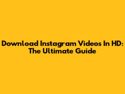 Download Instagram Videos In HD: The Ultimate Guide