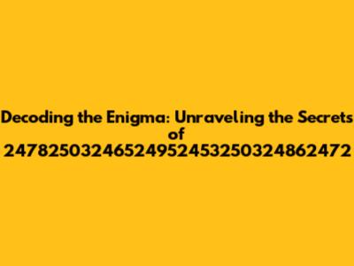 Hey guys, have you ever stumbled upon a sequence of numbers that just seemed to grab your attention, leaving you wondering about its hidden meaning? Well, today, we're diving headfirst into the fascinating world of numerology and exploring the significance of the number sequence 24782503246524952453250324862472. This isn't just a random string of digits; it's a potential key to unlocking insights about life, relationships, and even your own personal journey. Buckle up, because we're about to embark on a numerical adventure!