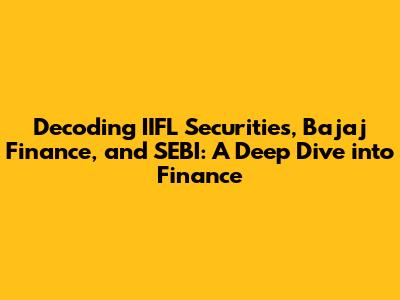 Hey finance enthusiasts! Let's dive deep into the world of IIFL Securities, Bajaj Finance, and the regulatory body, SEBI. Understanding these key players is crucial if you're looking to navigate the stock market, manage your finances, or simply stay informed about the Indian financial landscape. This article will break down each entity, their roles, and how they intertwine, providing you with a comprehensive understanding of their significance. We will explore IIFL Securities, a leading financial services provider, dissect the operations of Bajaj Finance, a prominent non-banking financial company (NBFC), and understand the regulatory oversight provided by SEBI (Securities and Exchange Board of India). So, buckle up, grab your favorite beverage, and let's unravel the complexities of finance together!