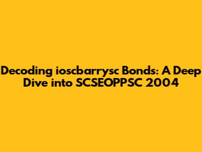 Hey there, finance fanatics and bond enthusiasts! Let's dive deep into the world of ioscbarrysc bonds, specifically focusing on the intriguing landscape of SCSEOPPSC 2004. For those of you who might be scratching your heads, wondering what all this jargon means, fear not! We're going to break down everything you need to know about this specific bond type, exploring its historical context, key features, and overall significance. Understanding the complexities of bonds can seem daunting, but trust me, we'll make it as clear and engaging as possible. So, buckle up and get ready for a journey into the world of fixed income, where we'll unravel the mysteries of ioscbarrysc bonds and the fascinating story of SCSEOPPSC from the year 2004.