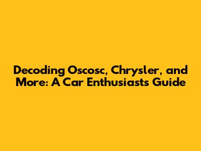 Hey car guys, let's dive into some automotive jargon! Ever heard of terms like oscosc chrysler scsc scscun scsc and wondered what they actually mean? Well, you're in the right place! This guide is all about breaking down these seemingly cryptic phrases and shedding some light on their significance. We'll explore the world of Chrysler vehicles, deciphering the technicalities that might seem confusing at first glance. Whether you're a seasoned mechanic or a curious car owner, understanding these terms can significantly enhance your knowledge and appreciation for the vehicles we love. This exploration will bring clarity to what might seem like a complex topic, making you feel more confident about everything related to Chrysler vehicles. The goal is to demystify automotive language. Buckle up, and let's get started!