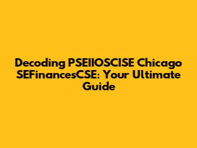 Hey there, finance enthusiasts! Ever stumbled upon the term PSEIIOSCISE Chicago SEFinancesCSE and felt a little lost? Don't worry, you're not alone! This article is designed to be your friendly guide to decode this potentially perplexing phrase. We'll break down each component, explore its implications, and provide you with a solid understanding of what it all means. So, grab your favorite beverage, sit back, and let's dive into the world of PSEIIOSCISE Chicago SEFinancesCSE!
