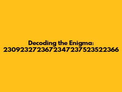 Ever stumbled upon a seemingly random string of numbers and felt a surge of curiosity? Well, today, we're diving deep into the fascinating world of seemingly nonsensical sequences, specifically focusing on the intriguing number: 2309232723672347237523522366. Now, I know what you might be thinking: "Is this just a random jumble?" or "Is there some hidden meaning behind this numerical enigma?". Let's embark on a journey to unravel the layers of this numerical puzzle and explore the potential significance, origins, and applications of such unique identifiers.
