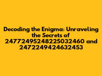 Hey guys, have you ever stumbled upon a series of numbers that just seem to be there, existing in a realm of pure mathematical abstraction? Well, today we are diving deep into the intriguing world of two such sets: 24772495248225032460 and 2472249424632453. These numbers, at first glance, appear as nothing more than a random sequence of digits. But, as we dig deeper, we will explore their potential significance, trying to understand if they hold any hidden meaning or purpose. It's going to be a fascinating journey, so buckle up! We will be looking at different perspectives and using a detective's approach in uncovering their secrets. Let's start this adventure together, shall we?