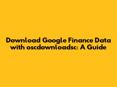 Download Google Finance Data With Oscdownloadsc: A Guide