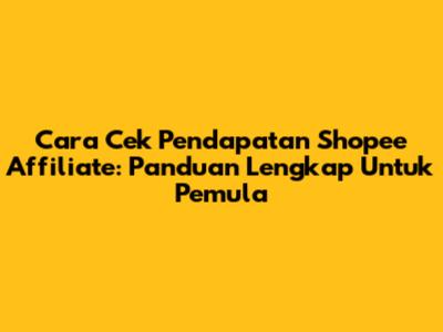 Cara Cek Pendapatan Shopee Affiliate: Panduan Lengkap Untuk Pemula