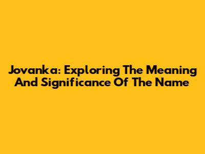 Jovanka: Exploring The Meaning And Significance Of The Name