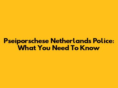 Pseiporschese Netherlands Police: What You Need To Know