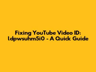 Hey guys! Ever stumbled upon a YouTube video and found yourself scratching your head because the ID seems off? Today, we're diving deep into fixing YouTube video ID ldpwsuhm5i0. Whether you're a content creator, a marketer, or just a regular YouTube enthusiast, understanding how to troubleshoot video IDs is super important. This guide will walk you through the common issues, the reasons behind them, and, most importantly, how to get everything back on track. So, let's jump right in and get this sorted!