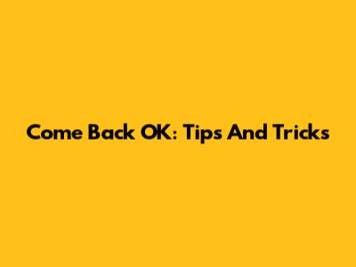 Come Back OK: Tips And Tricks