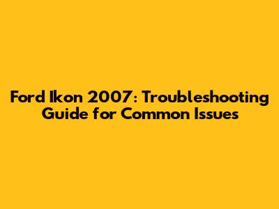 Ford Ikon 2007: Common Problems And Solutions