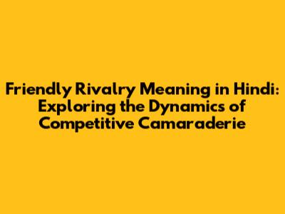 Now, let's look at some key characteristics that define friendly rivalry meaning in Hindi: