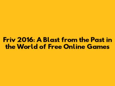 The Enduring Legacy of Friv 2016