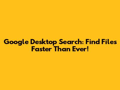 Hey guys, ever feel like you're drowning in a sea of files on your computer? You know you saved that crucial document, that hilarious meme, or that epic playlist somewhere, but finding it feels like an archaeological dig. Well, fear not! Google Desktop Search is here to be your digital Indiana Jones, unearthing your lost treasures with lightning speed. Back in its heyday, Google Desktop Search was a game-changer, allowing you to index and search your entire computer's content – emails, documents, photos, chats, you name it – directly from your desktop. It brought the familiar, powerful search capabilities of Google to your local files, making it incredibly easy to locate anything you needed. While Google officially retired Desktop Search a while back, understanding its concept and the principles behind it can still help us appreciate the importance of efficient local file searching and inspire us to find the best alternatives available today. Let's dive into what made Google Desktop Search so awesome and how you can still achieve similar results.