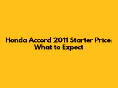 Honda Accord 2011 Starter Replacement Cost: What To Expect