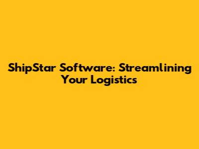 ShipStar Software: Streamlining Your Logistics