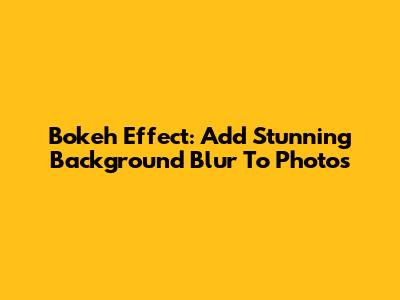 Bokeh Effect: Add Stunning Background Blur To Photos