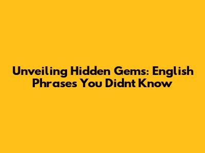 Unveiling Hidden Gems: English Phrases You Didn't Know