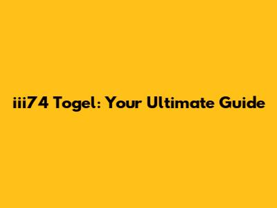Iii74 Togel: Your Ultimate Guide