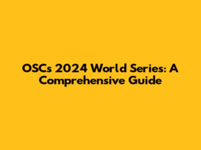 OSC's 2024 World Series: A Comprehensive Guide