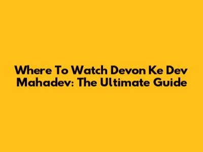 Where To Watch Devon Ke Dev Mahadev: The Ultimate Guide