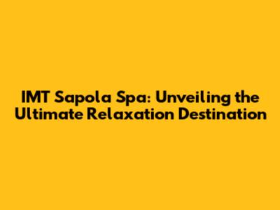 Unveiling the IMT Sapola Spa Experience