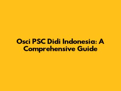 Osci PSC Didi Indonesia: A Comprehensive Guide