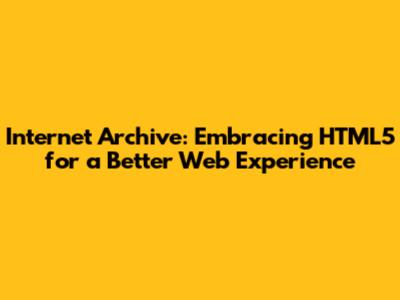 In conclusion, the Internet Archive's embrace of HTML5 is a significant step forward in its mission to provide universal access to all knowledge. By transitioning away from older technologies like Flash and adopting HTML5, the Archive is ensuring that its content remains accessible, functional, and secure for users around the world. So next time you're exploring the vast resources of the Internet Archive, remember that HTML5 is working behind the scenes to make your experience better. It's a testament to the Archive's commitment to innovation and its dedication to preserving our digital heritage for future generations.