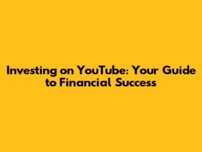 Investing On YouTube: Your Guide To Financial Success