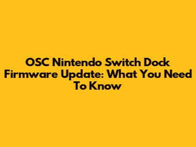 OSC Nintendo Switch Dock Firmware Update: What You Need To Know