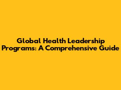 Global Health Leadership Programs: A Comprehensive Guide
